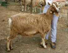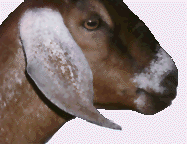 This goat was developed in England mainly as a dual purpose animal, i.e. for milk and meat. English Swiss type does were crossed with bucks from Eastern countries such as India, Egypt and Ethiopia. Any color or combination of colors is acceptable and the breed is characterized by its Roman nose and long, wide pendulous ears. The Nubien is the most popular breed in North America today and multiple births of 3 and 4 kids are common. The Nubien is also more heat tolerant and less cold tolerant than Swiss breeds which may have something to do with its pendulous ears. They tend to be more out of season breeders than Swiss and therefore provide winter milk more easily. They are also favored by buyers who purchase for meat because of their meatier carcass. Milk production is a little less than Swiss breeds but a good Nubien doe can average 2.5 litres per day over a 10 month lactation. | |