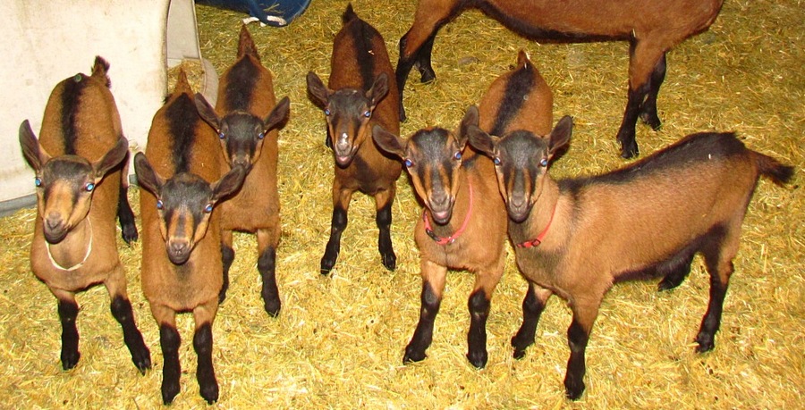 Considered the oldest and purest of Swiss breeds and once the most prominent of all dairy breeds in North America. They are the smallest of the five prominent dairy breeds in Canada and are also noted for their hardiness and adaptability to all climates. Their coat can be any shade of brown from light fawn to dark chocolate. A good doe should have no problem averaging 3 litres of milk per day over a 10 month lactation. In fact Toggenburgs are noted for their longer than average lactating period although their butterfat tends to be a little lower. A good doe can easily produce 4 to 6 litres at her peak of lactation. | |